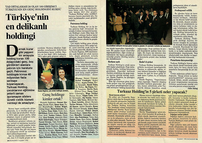 Bizler, ilkini 1989’da başlattığımız, ülkemizin yön verici ve etki sahibi ileri gelen saygın uzman ve nitelikli devlet adamlarını davet ettiğimiz ‘Pazar Toplantıları’, ‘Bab-ı Ali Toplantıları’ ve ‘Gündeme Genç Bakış Toplantıları’nı düzenledik. Siyaset, ekonomi, toplumsal yaşama dair düzenli aylık toplantılar aracılığıyla 20’li yaşlarımızdan itibaren, beraberce düşündük, sorduk, öğrendik. Böylece girişimlerimizi sağlam temellere oturttuk.